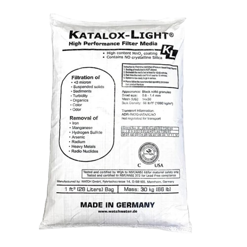 Katalox Light es un medio filtrante de alta eficiencia utilizado en sistemas de tratamiento de agua, principalmente para eliminar impurezas como hierro, manganeso, sulfuro de hidrógeno y otros contaminantes. Está compuesto por un núcleo de dióxido de manganeso recubierto sobre una base de zeolita, lo que le permite realizar una filtración eficiente y oxidativa de contaminantes. A menudo, se utiliza en aplicaciones industriales, comerciales y domésticas.